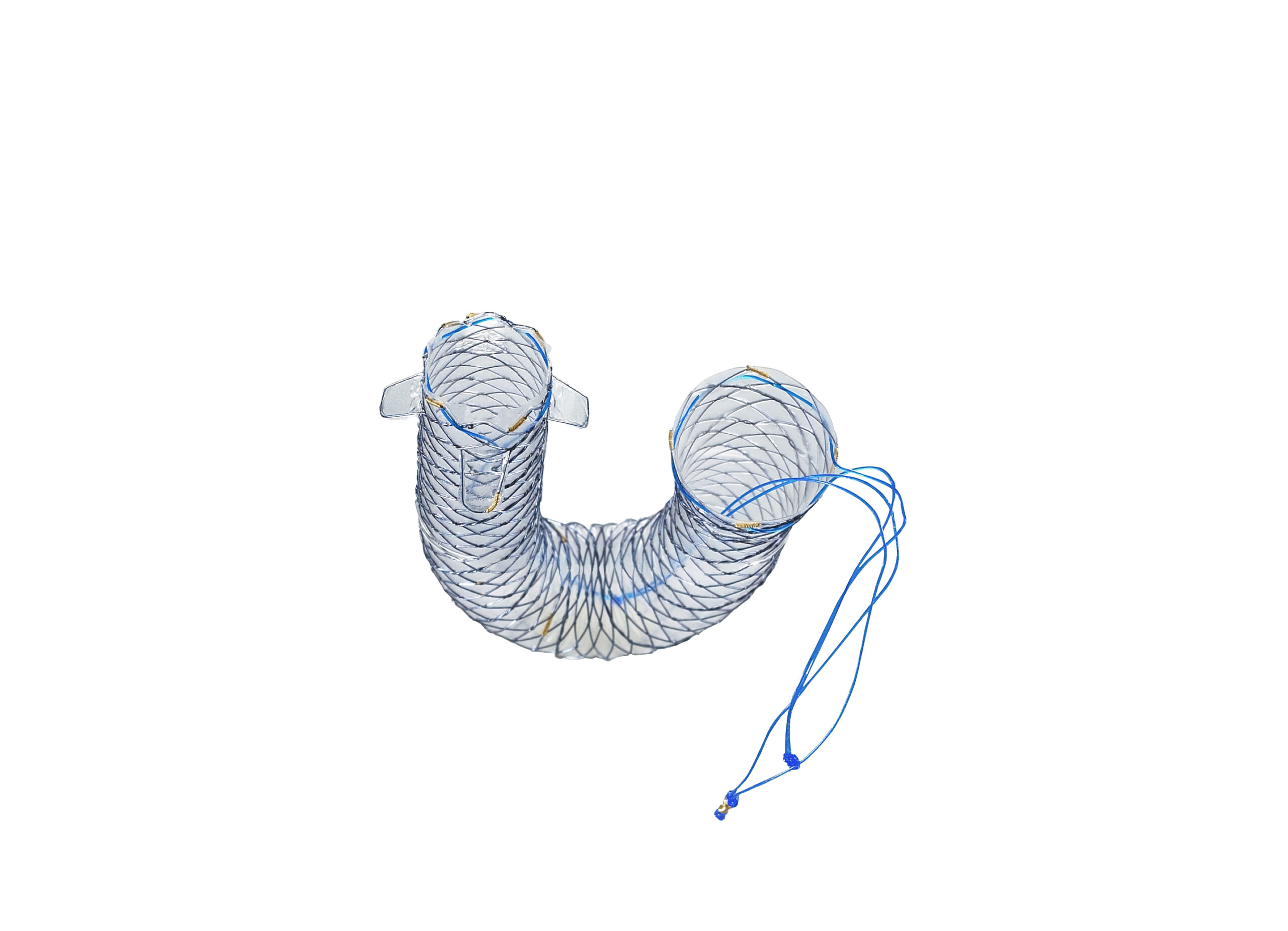 Un novedoso sistema de «colgajo de anclaje» (FCSEMS-AF) compuesto por cuatro colgajos en el extremo proximal para evitar la anti-migración. Su lazo proximal con marcador dorado constituye un avance de vanguardia en la endoscopia terapéutica para enfermedades biliares benignas.