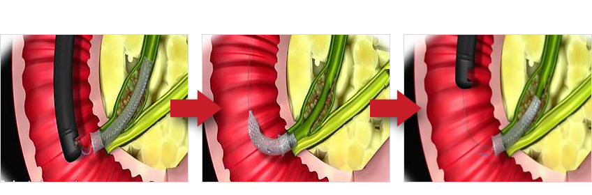 El anclaje a la pared del colédoco evita la migración del stent tanto proximal como distal *.