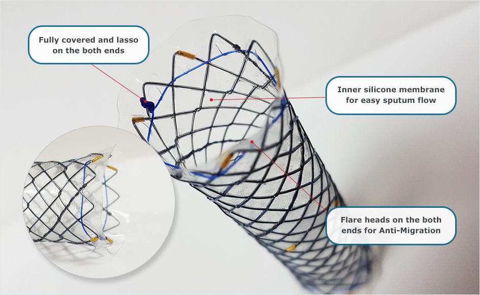 El stent de tráquea / bronquio está indicado para su aplicación en el tratamiento paliativo de la estenosis traqueo-bronquial y / o fístula traqueoesofágica causada por tumores malignos y / o benignos.